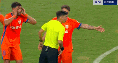 比赛的第7分钟,刘洋左路横传,球打在马纳法的手上。尽管刘洋第一时间举手示意,但主裁判麦麦提江并未做出判罚。视频助理裁判介入判罚之后,同样认为马纳法并未犯规。